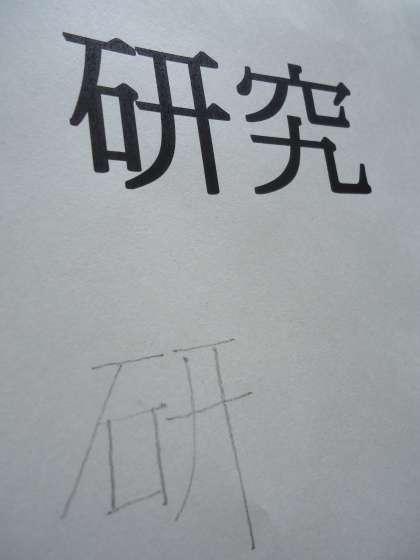 明朝体は簡単で,「とめ」の部分には「山」をつくること,これは古代中国の書家の筆跡に端を発します。
