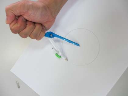 コンパスは,先端をおや指とひとさし指ではさんで持ち,くるっと回すと円が描けます。
