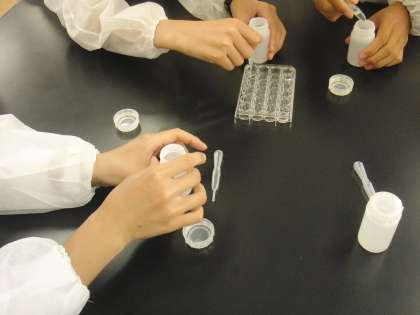 6人一チームで数学や理科の問題を解いたり,実験を行ったりします。