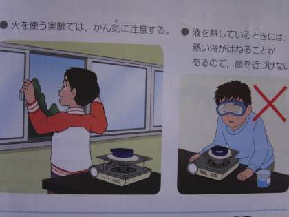 教科書のイラストもガスコンロです。