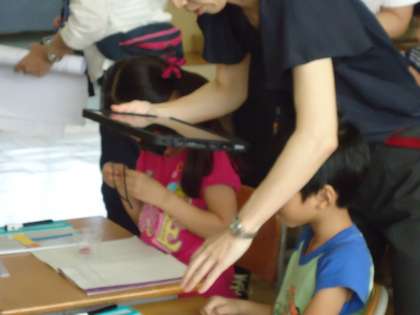 タブレットPCを手に授業を展開