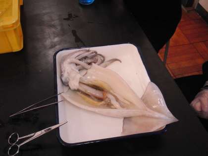 写真は「無セキツイ動物のからだのつくり」を調べる観察です。
