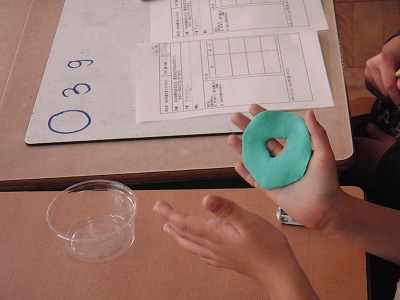 児童は一定量の粘土の形を様々に変え,重さが変化するかを調べています。