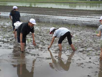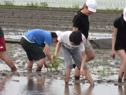 地域の方の田んぼをお借りして,5,6年生が泥だらけになりながら,自分の手で苗を植え付けました。
