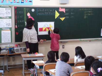 1年3組では、さんすうの「かたちづくり」の授業が行われました。