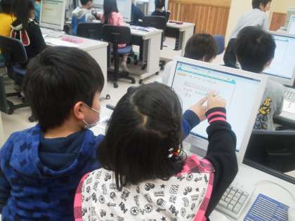 2月に入って継続的にパソコン室でインタラクティブスタディを利用ながら算数の復習に取り組んでいます。