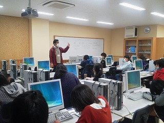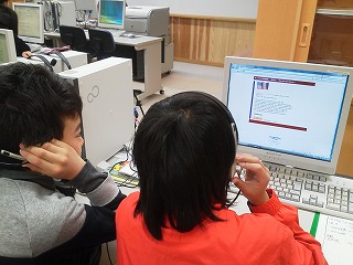 お目当ての情報に行きつき 食い入るように画面を見つめる児童たち。