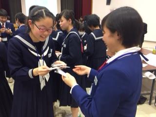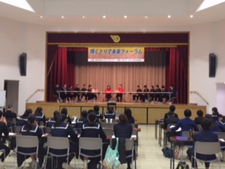6日(金)、藤代公民館の講堂において、市内6中学校の生徒会役員を集めて、「輝くとりで未来フォーラム」が開催されました。フォーラムでは、いじめ撲滅に向けた各校の実践発表、お互いの親交を深めるための名刺交換などのエンカウンター活動、そして、いじめ撲滅のスローガン作成を行いました。生徒達は、いじめ撲滅を目指したスローガンづくりに真剣に取り組み、最終的に、一つのスローガンを投票で決めました。取手中央ライオンズクラブの協力によって、今回決まったスローガンは、のぼりに印刷され、各中学校に配付される予定です。