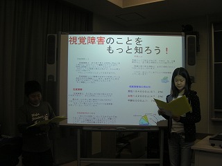 (写真の発表テーマはー視覚障害のことをもっと知ろうー)