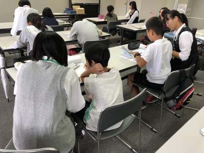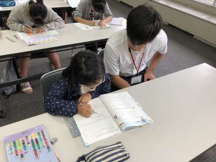 そして,近隣の高校生ボランティアと大学生サポーターが子どもたちの質問に答えたり一緒に考えたりしながら学習支援を行っています。ほかにも,元教員サポーターなどみなさんに支えていただきながら,本事業を進めることができています。ありがとうございます。