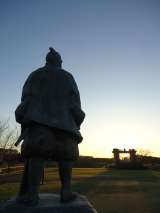 先人の偉業。 写真は間宮林蔵像です。小貝川三大堰のひとつである岡堰の中の島に立っ...
