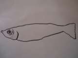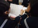 【写真上】 先生「メダカですが,ひれがありませんので,書き込んでください。」 こ...