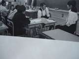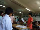 上の写真の授業では, 「賛成」 「反対」 それぞれの立場を決めて,意見を発表する...