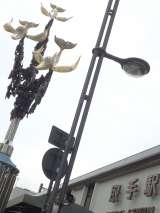 取手駅東口。 【写真上】の彫刻は題「シュプリンゲン」,東京芸術大学の先生の作品で...