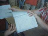 ノートを交換して,お互いに見るという学習活動の写真です。 PISA型読解力でも,...