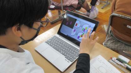 4. 作品が完成したら「あそぶ」画面で全画面表示し、お互いの作品を鑑賞する。