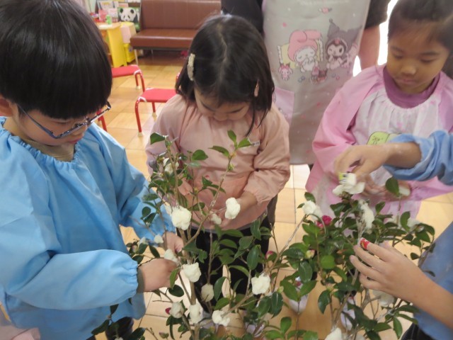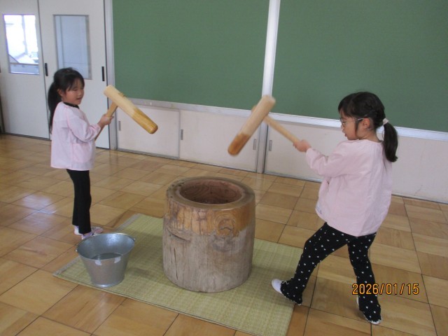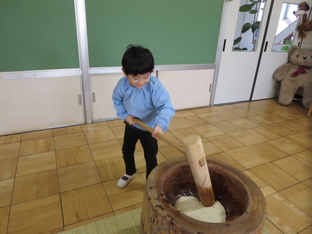 幼稚園では毎年この時期にもちつきをして、ならせもちを作っています。