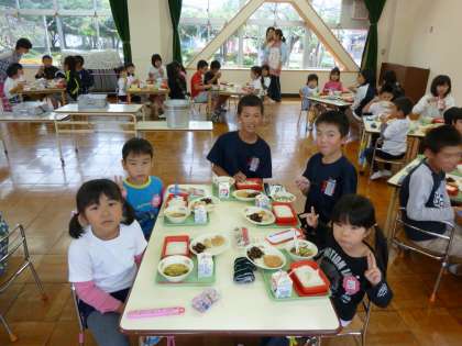 5年生と給食を一緒に食べました。