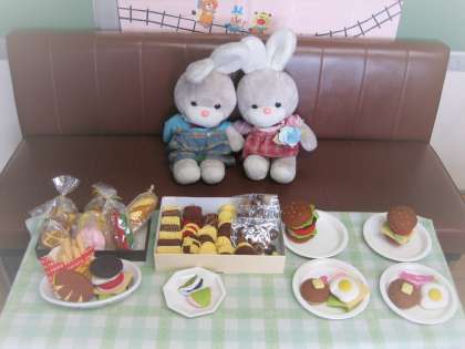 小学校の先生からステキな布でできた食べ物のおもちゃをいただきました。