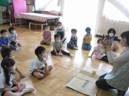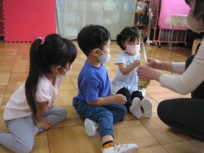 この日は園長先生がたけのこを持ってきてくれて、子ども達にお話をしてくれました。