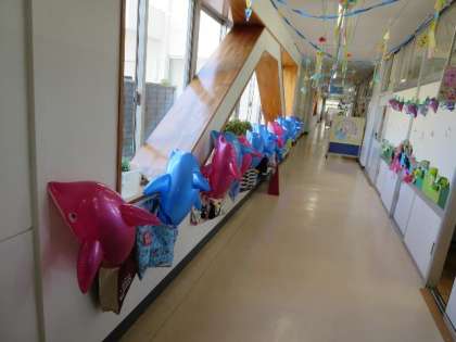 もらったイルカもなんだか嬉しそうに廊下に並んでいるようでした☆