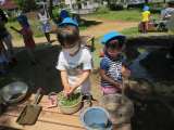 お料理を作ったり、お友達と力を合わせて川を作ったりしています。